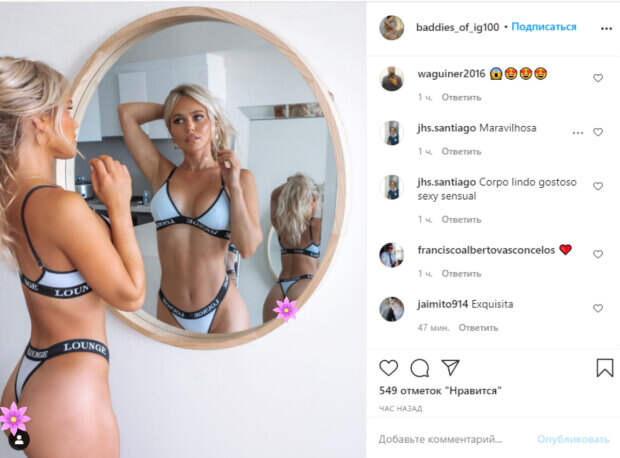 Примечательно также и то, что лучшие свои фото она делает сама дома, пользуясь камерой и зеркалом. В этот раз Осланд восхитила простым и удачным образом в спортивном белье белого цвета и с черными лямками. Благодаря подобранной позе, Хильде смогла восхитить сразу и бюстом, и ягодицами. Вот что написали поклонники норвежской красотки, демонстрирующей свои достоинства на пикантном кадре: «