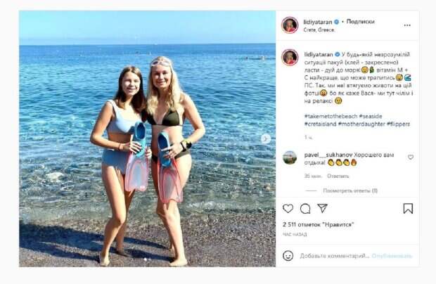 На текущий момент Лидия работает на 1+1, а также ведет активно страничку в Инстаграм, где делится с фанатами всем интересным. На новом фото Лидия позировала в мини-бикини. Рядом стояла 14-летняя дочь Василина в более скромном купальнике. Мама и дочь в руках держали ласты и улыбались, позируя на фото. Известно, что семья отправилась отдыхать в Грецию, а на днях Василине исполнилось 14 лет. "В любой непонятной ситуации пакуй (клей - зачеркнуто) ласты - дуй к морю! витамин Н + С лучшее, что может случиться. ПС. Да, мы не! втягиваем животы на этой фотке. А как говорит Вася- мы здесь чилим и на релаксе", - написала Лидия. Фанаты поставили тысячи лайков и написали комментарии: "Хорошего вам отдыха!", "Витамины М + С пошли вам на пользу красавицы", "Приятного отдыха", "Классные девчонки? А главное счастливые!". Напомним, красотка из 1+1 Лидия Таран оконфузилась прямо во время съемок на студии кадры Также Politeka сообщала, что красотка из 1+1 Лидия Таран показала шрам на лице и откровенно рассказала, откуда он взялся А еще Politeka писала, что ведущая "1+1" Лидия Таран с головой бросилась в фонтан, появились кадры