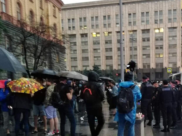 Акция в поддержку журналистки Светланы Прокопьевой прошла в пятницу вечером у здания ФСБ на Лубянке. Журналистку обвиняют в оправдании терроризма за мнение, высказанное в авторской колонке. фото: Елена Кривень У здания ФСБ в Москве проходит акция в поддержку псковской журналистки Светланы Прокопьевой.