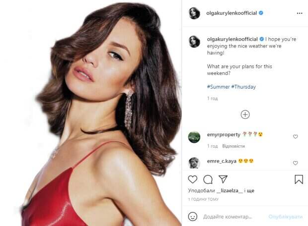 Не забывает Ольга и о своем микроблоге Instagram, где регулярно радует фанатов яркими фото и видео из свой насыщенной жизни. Так, в этот раз Куриленко поделилась очаровательным кадром, на котором позирует в соблазнительном образе. Как видно, перед камерой она появилась в изысканном красном платье на тоненьких бретельках, которое красиво подчеркнуло зону декольте и изящные плечи. Ее волосы распущены в стильной укладке, а на лице яркий макияж с кокетливыми черными стрелками, завершают образ массивные серьги. В подписи к публикации Ольга написала: "Надеюсь, вам нравится хорошая погода! Какие у тебя планы на эти выходные?". Пользователи тут же принялись активно обсуждать новую публикацию звезды, засыпая ее комплиментами в комментариях к снимку. "Красотка", "Очень красивая, чудесная", "Какая вы красивая", "Красота, останавливающая сердце", "Стильный и великолепный образ", "Шикарная леди", "Вы великолепной красоты женщина", - пишут восторженные фанаты под фото Ольги. Напомним, украинская девушка Бонда актриса Ольга Куриленко едва втиснула формы в узкое платье с пикантной деталью. Как сообщала Politeka, что украинская девушка Бонда красотка Ольга Куриленко с поджатыми ногами показала, чем покорила агента 007. Также Politeka писала, что украинская девушка Бонда актриса и модель Ольга Куриленко с глубоким декольте не устояла перед собственным отражением.