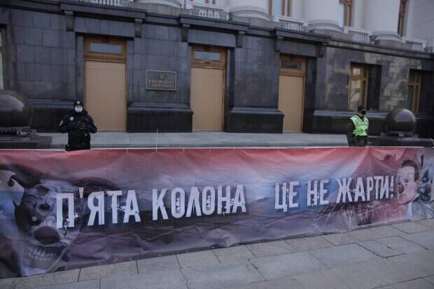Под стенами Офиса Президента состоялся митинг с требованиями прекратить деятельность пророссийских политиков в Украине. Участники напомнили, что деятельность пятой колонны в Украине – это не шутки, и призвали начать реальную борьбу с коллаборационизмом. Организатором акции-перфоманса выступил Национальный Корпус.