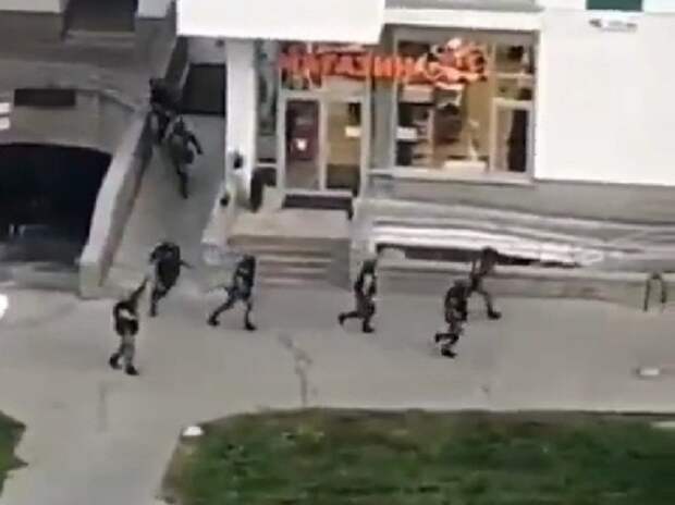 Фото: Кадр из видео В Минске бойцы ОМОН открыли огонь по людям, которые выкрикивали с балконов своих квартир советы для протестующих. Это произошло на проспекте Дзержинского у станции метро "Грушевка". Как сообщило агентство "Sputnik Беларусь", к протестующим из автозаков выбежали омоновцы. В этот момент активисты начали убегать.
