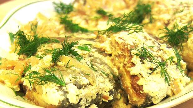 Ингредиенты: — 2 кг рыбы (хек, минтай) — 3 головки лука — 2 яйца — 150 г сыра твердых сортов — 400 г сметаны — растительное масло — мука — маленький пучок укропа — специи, соль и горчица по вкусу Приготовление: 1. Рыбу помыть, почистить, нарезать небольшими кусочками. 2. Сделать панировку: в плоское блюдо насыпать […] The post Рыба, запеченная в сметане.