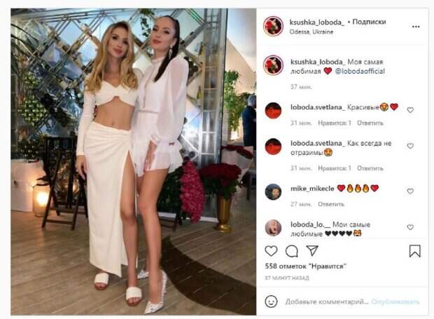 Как и Светлана, сестра ведет активно блог в социальных сетях, где нередко можно увидеть девушек вместе. На новом фото, которе Ксения показала в Инстаграм, Светлана была в топе и юбке с разрезом от бедра. Рядом стояла младшая сестра, которая решила использовать прозрачный наряд, а образ дополнила стильными туфлями на большом каблуке. Как можно заметить, фото было сделано в Одессе. "Моя самая любимая Светлана Лобода", - подписала фото Ксения. Фанаты поставили сотни лайков и написали комментарии: "Красивые", "Как всегда неотразимые", "Мои самые любимые", "Прекрасные", "Огонь". Напомним, Лобода насладилась "покатушками" на яхте, сверкнув фигурой в коротком топе А еще Politeka писала, что Лобода в эффектном боди и сапогах засветилась в компании известного продюсера Также Politeka сообщала, что Лобода после громкого заявления о возвращении на родину, раскрыла, что ждет украинцев