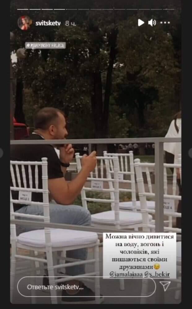 Певица Джамала выступала на концерте, посвященном 30-летию Независимости Украины Программа Кати Осадчей "Світське життя" вели съемку с мероприятия. В кадр попал муж Джамалы, предприниматель Бекир Сулейманов, который наблюдал за выступлением возлюбленной. Реакцию Бекира засняли жуналисты, поделившись кадрами в Инстаграм, передает Politeka.