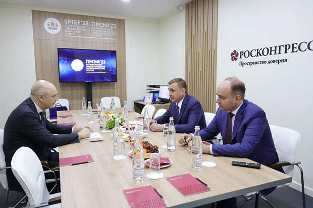 Сегодня, 16 июня, губернатор Тульской области Алексей Дюмин встретился с министром финансов РФ Антоном Силуановым в рамках Петербургского международного экономического форума, как сообщает пресс-служба регионального правительства. На мероприятии Дюмин заявил, что Минфин играет значительную роль в обеспечении стабильности регионов и выразил министру благодарность за помощь во время пандемии и сейчас.