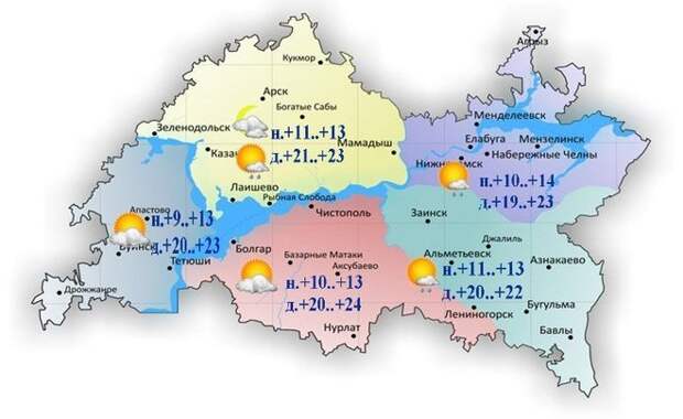 В воскресенье, 5 июня, в Татарстане ожидается переменная облачность, местами кратковременный дождь. Такой прогноз дали в Гидрометцентре республики. Днем температура воздуха в Казани составит +21—23 градуса, в Менделеевске — +19—23. В Лениногорске ожидается +20—22 градуса, в Нурлате — от +20 до +24, в Апастово — от +20 до +23.