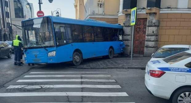 Во Владивостоке автобус задним ходом врезался в здание краевого суда. Пассажиры не пострадали, так как в момент аварии салон пустовал. На место выехали полицейские и специалисты технадзора, сообщило УМВД России по Приморскому краю.