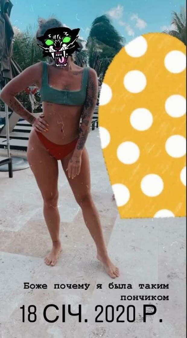 Лицо она решила прикрыть при помощи стикера. «Но даже из пончика можно превратиться в худышку, если выбрать правильную позу. Но щеки выдают», — подчеркивается в тексте сообщения. Обратим внимание, что на втором снимке Горовая позирует, приспустив халат и выставив напоказ невероятные изгибы. На камеру знаменитость позировала полубоком. Однако ее поклонники не смогли высказать слова восхищения об идеальном теле кумира, поскольку фотографии она выбросила в Сторис. До этого мы писали, что приемная дочь украинского продюсера Потапа Наталья Горовая похвасталась невероятной фигурой в одном купальнике Так, девушка позирует перед зеркалом в крохотном белье, застыв перед на камеру полубоком. Благодаря этому звезда сумела подчеркнул роскошные формы и то, Как она сумела подготовиться к лету. Уточним, что на заднем плане виднеется холодильник и часть окна. Тело Горовой буквально покрыто татуировками. Однако ее лица в кадре нет – она решила закрыть его мобильным телефоном. Поверх кадра был наложен фильтр, который делал его черно-белым. Напомним, дочь Потапа сверкнула аппетитными формами в купальнике А еще Politeka писала, что сочная дочь Потапа в одном белье показала идеальные изгибы Также Politeka сообщала, что дочь Потапа сверкнула идеальным телом на отдыхе