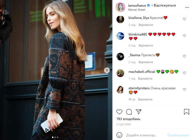 Она всегда выглядит очень стильно и элегантно. Впрочем, свежий кадр произвел особое впечатление на поклонников звезды. Соня вышла на улицы Нью-Йорка в украинской вышиванке известного бренда. Таким образом София буквально показала, как скучает за родиной. В комментариях красотке оставили массу приятных слов. «Красивая! Счастья, здоровья, любви, удачи», «Прелесть», «Красота», «Такая нежная», «Настоящая украинка», «Выглядишь превосходно», - пишут пользователи сети. Как известно, Соне Евдокименко всего 19 лет. Она живет в США, хоть иногда и приезжает в Украину. Известно, что у девушки уже есть молодой человек, который может похвастаться отличным заработком. Ранее Евдокименко похвасталась, что в Нью-Йорке наступила настоящая весна. На новом фото красотка предстала в стильном образе – на ней были белые укороченные брюки и светлая футболка, а на ногах белоснежные кроссовки. Напомним, что 19-летняя внучка Ротару в соблазнительном мини показала свою хищную натуру в ресторане: неожиданные кадры. А еще Politeka писала, что 19-летняя внучка Ротару забыла надеть лифчик, приковав внимание к хрупкой фигуре: "Просто неземная красота!". Также Politeka сообщала, что 19-летняя внучка Ротару в роскошном платье соблазняет мужчин на улицах Нью-Йорка: "Как всегда шикарна".