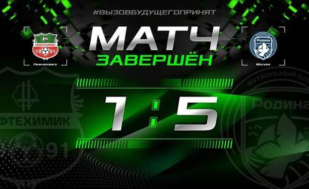 ФК «Нефтехимик» потерпел разгромное поражение от московской «Родины». Матч 31-го тура Первой лиги закончился победой гостей со счетом 1:5. Счет в матче на 11-й минуте встречи открыл нападающий «Нефтехимика» Константин Базелюк. Под занавес первого тайма гости сравняли счет. Остальные четыре мячи москвичи забили во второй половине игры.