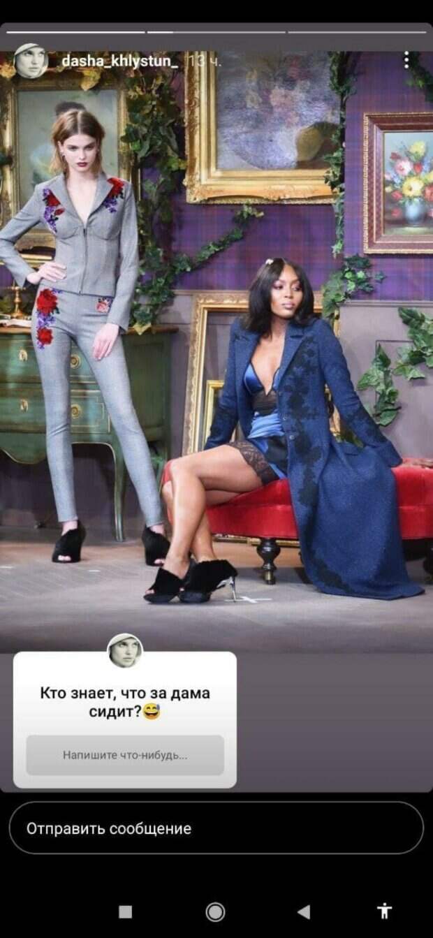 Сама же девушка на множественные вопросы и критику никак не реагировала. Теперь пара живет вместе, а недавно даже трогательно отметила день рождения девушки на отдыхе и поделилась совместными нежными кадрами. Также Даша в разделе Стори рассказала о том, как успешно выступила с легендарной мировой моделью Наоми Кэмпбелл. Позируя рядом с красоткой, Даша выглядела очень эффектно, а поклонники смогли узнать, что сотрудничала с легендой Хлистун уже не один раз. Отметим, бурные обсуждения, связанные с Дарьей часто переходят границы. Девушка довольно популярна, ведь участвовала в показах Dior, Saint Laurent, Alberta Ferretti, Kenzo, Lanvin, Stella McCartney, Givenchy, Versace, Fendi, Sonia Rykiel, Valentino, Marc Jacobs и Chloé. Также ранее Даша попросила посоветовать ей топовые фильмы и сериалы, а фанаты не остались равнодушны: Вот как отвечают в сети: «Сериал : Как избежать наказание за убийство . Сериал нечто , у меня нет слов ... смотрю сейчас , не вероятная игра актеров , держит в напряжении все сезоны . Посмотрите не пожалеете ); Ты смотрела «Великолепная миссий Мейзел» и «Аббатство Даунтон», «Миллиарды»? очень крутые сериалы