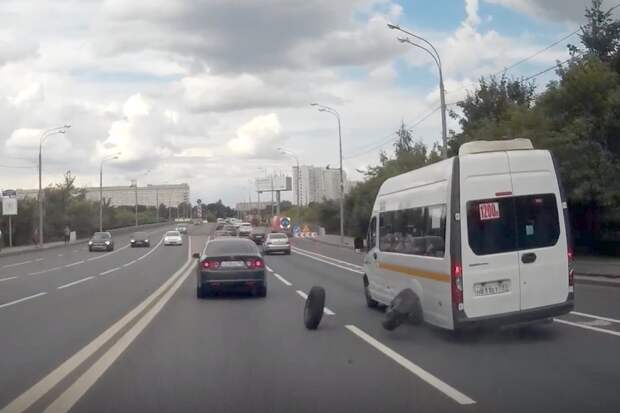 На юге Москвы у маршрутного микроавтобуса в пути оторвались две покрышки.