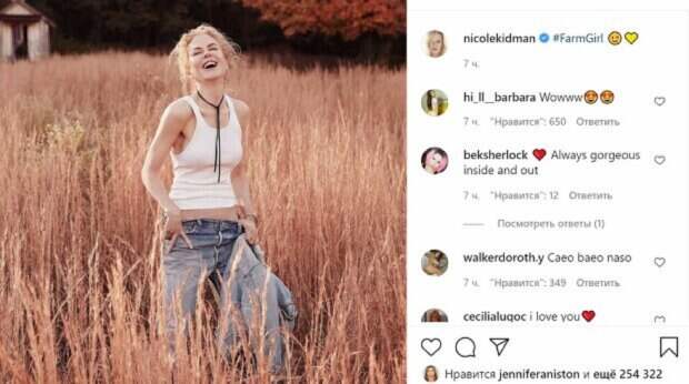 На фото Николь была в лосинах, топе и кроссовках. Красотка бежала по проселочной дороге среди деревьев. Волосы Кидман пришлось собрать назад, чтобы они не мешали сеансу тренировки. "Впереди выходные", - написала звезда под фото. Фанаты поставили десятки тысяч лайков и написали комментарии: "Какой хороший день", "Ты прекрасно выглядишь, Николь", "она бегун, она звезда легкой атлетики", "Как прекрасна моя любовь", "Где это красивое место", "На другом конце планеты я бегу с тобой", "Вы всегда можете бежать ко мне в объятия, увидев фильм с широко закрытыми глазами". Сообщалось, что знаменитая голливудская актриса Николь Кидман похвасталась фигурой в новом соблазнительном образе. Кидман позировала в джинсовом костюме, при этом штаны актриса игриво потянула вниз, а куртку сняла и просто держала в руках, оставшись в короткой белоснежной майке-алкоголичке. Наряд "фермерской девочки" удачно подчеркнул все достоинства фигуры Николь. Напомним, 53-летняя Николь Кидман попала в беду, актрису не спас даже муж А еще Politeka сообщала, что 53-летняя Николь Кидман показала, какими красотками выросли ее дочери Также Politeka писала, что 53-летняя Николь Кидман впервые рассказала о тяжелой болезни, рак никого не щадит