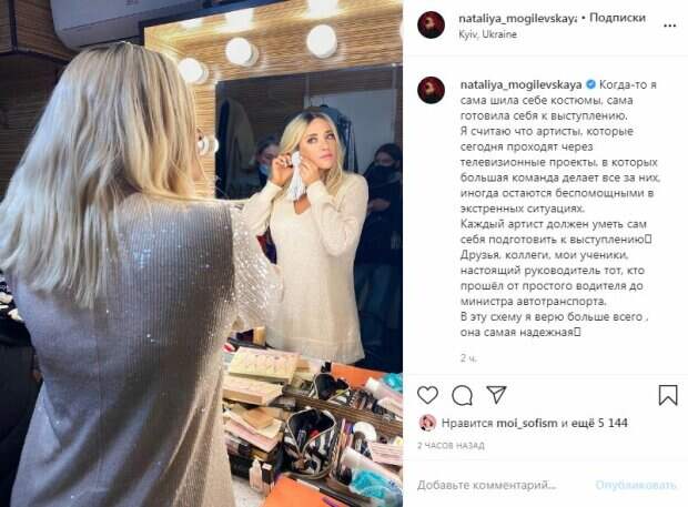 Ее глаза были подчеркнуты темными тенями, а губы - розовой помадой. В посте певица рассказала, что было время, когда она сама себе шила костюмы и сама готовилась к выступлению. Однако сегодняшние артисты не проходят через это. "Я считаю, что артисты, которые сегодня проходят через телевизионные проекты, в которых большая команда делает все за них, иногда остаются беспомощными в экстренных ситуациях. Каждый артист должен уметь сам себя подготовить к выступлению