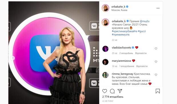 Недавно на своей странице в Instagram артистка опубликовала яркое фото со сцены, на котором она своим видом даст фору молодым. На новом снимке Кристина запечатлена на сцене, а за ее спиной видно фотозону музыкальной премии. На церемонию звезда вышла в интересном образе – на ней полностью черное длинное платье черного цвета из силеэтом змеи на груди, под которым просвечивается стройная фигурка. Волосы певицы распущены и аккуратно спадают по плечам, нежный макияж дополняет восторженная улыбка и длинные серьги. В подписи к фотографии написано: "Премия Мuztv "Начало Света" 20/21 Очень красивое шоу