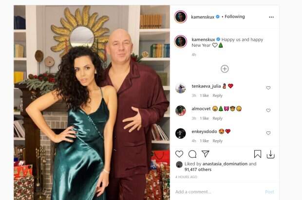 К супруге сзали прижался Алексей Потапенко (настоящее имя рэпера) в красной пижаме с опухшим и заспанным лицом, будто только проснулся. "Счастливые мы и счастливый Новый год", - подписала пост Настя Каменских. Пользователи социальной сети не поскупились на комментарии о внешнем виде знаменитой пары: "Мне показалось возле Насти Вин Дизель стоит"; "А что Потап так постарел?"; "Что за дедушка с тобой