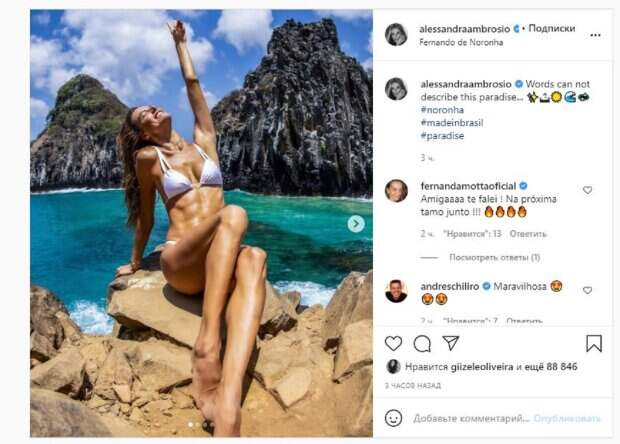 Об этом пишет Politeka.net со ссылкой на страничку знаменитости. "Словами не описать этот рай", - написала красотка под фото. Фанаты поставили почти 90 тысяч лайков и написали комментарии: "Я тебе сказал! В следующий раз мы вместе !!!", "Просто самая красивая женщина в мире", "навсегда в отпуске, эль!", "Сенсационная русалка", "Я не чувствовал себя комфортно с акулами", "Потрясающий сияющий", "Такая потрясающая и блестящая", "Всегда божественная", "Я вижу там два прекрасных пейзажа", "Алессандра, я замечаю", "Как всегда, потрясающе красивая, Алессандра". Мы писали, что известная модель Алессандра Амбросио похвалилась стройной фигурой на природе. Алессандра надела прозрачное платье, под которым просматривалось крохотное бикини, обтянувшее ее красивую грудь, и немного оголившее ягодицы. Напомним, Селена Гомес без лифчика затмила пышным бюстом даже ангелов Victoria’s Secret А еще Politeka сообщала, что красотка из Victoria’s Secret восхитила румяными "персиками" в купальнике Также Politeka писала, что красотка из Victoria’s Secret в бикини устроила нежные шалости с подружками на пляже