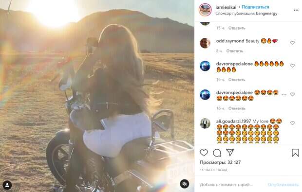 Популярная и эффектная фитнес-модель Лекси Кай примерила дерзкий образ байкерши во время поездки на мотоцикле Модель является рекламным представителем энергетических напитков для спортсменов, потому часто снимает оригинальные ролики на улице во время своих тренировок. При этом личные видео Лекси показывает довольно редко.