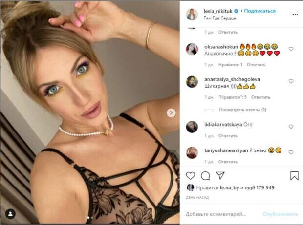 Стоит отметить, что лифчик Леся выбрала непростой, а от знаменитого британского бренда Agent Provocateur. Стоимость самого только бюстгальтера составляет более 6 тысяч гривен. Дополнила свой пикантный лук девушка также блестящим макияжем с акцентом на глаза, выделив веки желтыми и лиловыми тенями. Как и ожидалось в сети оценили образ, обсудив внешний вид телеведущей. "Я так всегда утром выгляжу. А вы?"– с юмором написала ведущая. Вот как реагируют в сети, среди комментаторов были замечены и звезды - Маша Ефросинина и Ольга Сумская. «Богиня красоты
