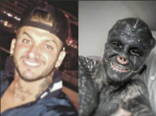 Сейчас у 33-летнего парня уже действительно устрашающий вид. Все его тело покрыто черным татуажем, удалены уши, отрезаны верхнюю губу и частично нижнюю. А раздвоенный язык "забит" зеленым тату. Кроме того, удален нос и в голову вживлены несколько имплантатов - для того, чтобы изменить форму. Также парень недавно перенес операцию по удалению на руке мизинца и безымянного пальца. Таким образом есть попытка превратить свою конечность в коготь инопланетянина. Как указано в публикации Mirror, парень с детства интересовался историями о мутантах. А уж когда повзрослел, решил превратиться в одного из них. Энтони Лоффредо отмечает, что на сегодня он превратился лишь в треть от задуманного. А вообще все трансформации, которые происходят с ним и телом приносят удовольствие и делают его счастливым. Все изменения молодой человек публикует на своей Instagram-странице. На The Black alien project (Проект "Черный инопланетянин") подписано более 750 тысяч пользователей соцсети. Напомним, Мадонна наплевала на принципы и разлеглась перед красавчиком с татуировками Как сообщала Politeka, Мадонна в кружевах наконец показала результаты пластики, Пугачевой и не снилось. Также Politeka писала, что страшное случилось с Мадонной: звезда не смогла сдержать слез
