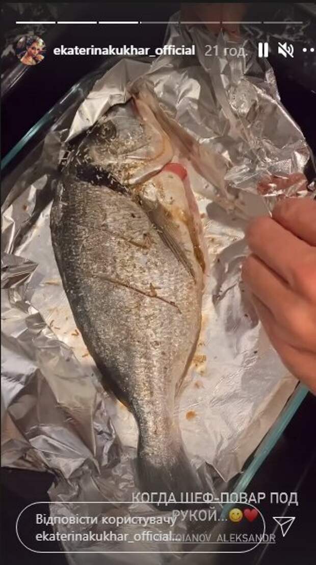 Как видно, Александр решил приготовить любимой запеченную в фольге рыбу. Процесс готовки Катя снимала на видео и показала своим поклонникам. В кадре не видно ни балерину, ни ее мужа, только их руки, а также слышно голос. Стоянов замариновал целую рыбу и начал деликатно заворачивать ее в фольгу, при этом спрашивая у жены, все ли он делает правильно. "Все, можно запаковывать?", - говорит Александр. "Ну так это видео", - отвечает ему Катя. "Я знаю", - парирует ей муж. "Когда шеф-повар под рукой", - шутливо подписала Кухар свое видео. Похоже, Александру Стоянову срочно пора на "МастерШеф", с такими кулинарными навыками. Напомним, Кухар из "Танців з зірками" показала, как расслабляется в халатике, поделившись эмоциональным признанием: "Богиня". Как сообщала Politeka, Муж Кухар из "Танців з зірками" не сдержал эмоций, глядя на конкурентку жены: "Моя маленькая...". Также Politeka писала, Кухар из "Танців з зірками" в соблазнительной позе показала страсть с красавчиком-мужем: "Дарю...".