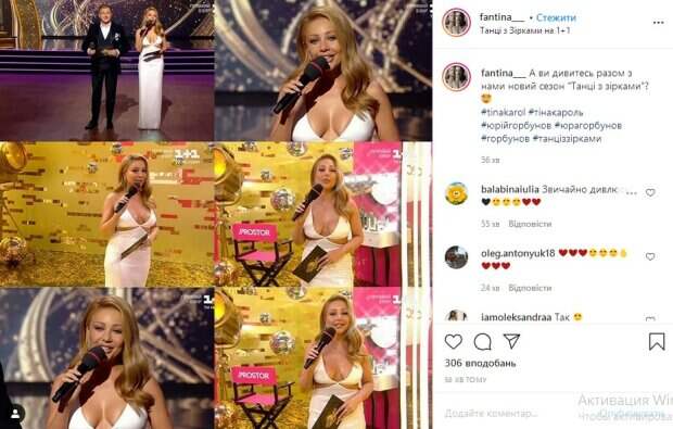 Популярная украинская исполнительница Тина Кароль похвасталась роскошной фигурой в тесном платье на шоу «Танці з зірками» Об этом сообщает Politeka со ссылкой на фан-страницу певицы в Instagram. «А вы смотрите вместе с нами новый сезон…?» - говорится в сообщении. Уточним, что на опубликованных снимках видно, что Тина Кароль позирует на камеру в тесном платье с экстремальным декольте, которое явно маловато для внушительных размеров звезды.
