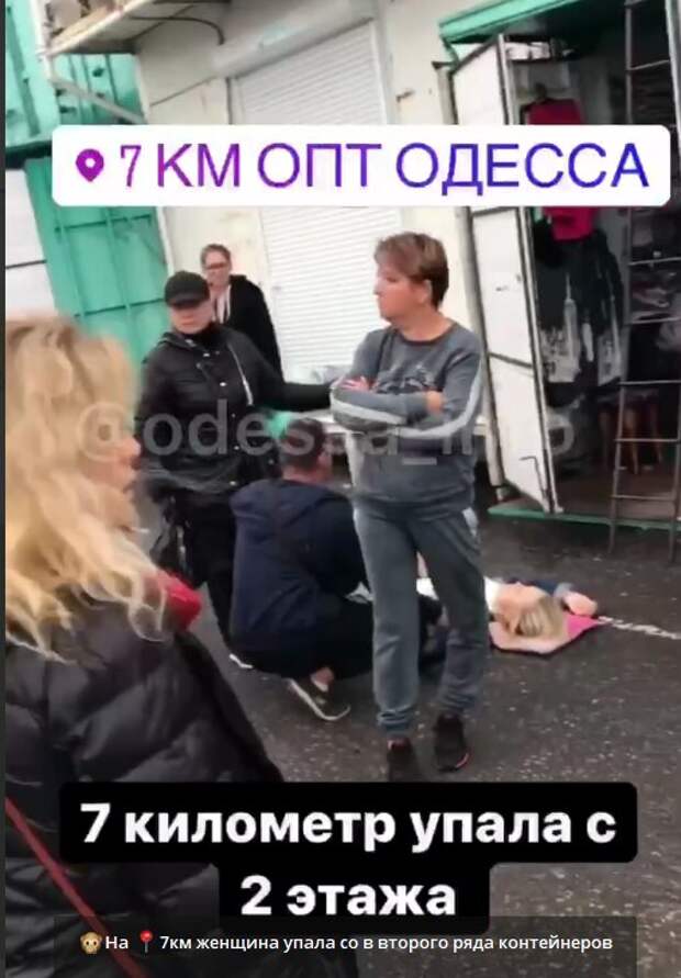 На крупнейшем промтоварном рынке «Седьмой километр», который находится вблизи Одессы, женщина сорвалась с высоты Кадры с места происшествия показал телелеграм-канал «Одесса INFO», передает Politeka.net (чтобы просмотреть – доскролльте страницу до конца) Как сообщили очевидцы, женщина по непонятным причинам сорвалась со второго ряда контейнеров и упала на землю.