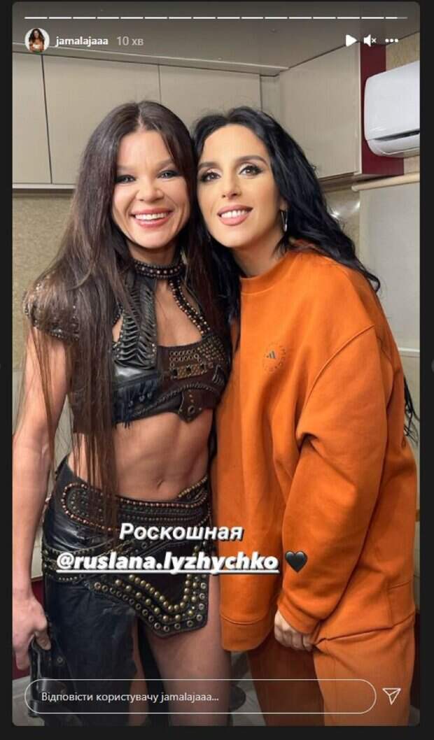 Певицы продолжают творить, а также ведут блоги в социальных сетях. Так, на своей страничке в Инстаграм фотографию опубликовала Джамала. Как оказалось, певица встретилась с Русланой. Лыжичко была на снимке в кожаном мини-костюме. а Джамала надела свитер и штаны. "Роскошная Руслана Лыжичко", - написала победительница "Евровидения 2017" у себя в профиле Инстаграм. Фолловеры не смогли поставить лайки или написать комментарии под фото на страничке Джамалы, так как снимок был опубликован в сторис Инстаграм, где подобных функций нет. Напомним, Джамала в блестящей майке с глубоким вырезом заинтриговала сюрпризами А еще Politeka писала, что в сеть попали эксклюзивные кадры подготовки Джамалы к шоу «Маскарад-2» Также Politeka сообщала, что Джамала обратилась за помощью перед новым эфиром "Танців з зірками"