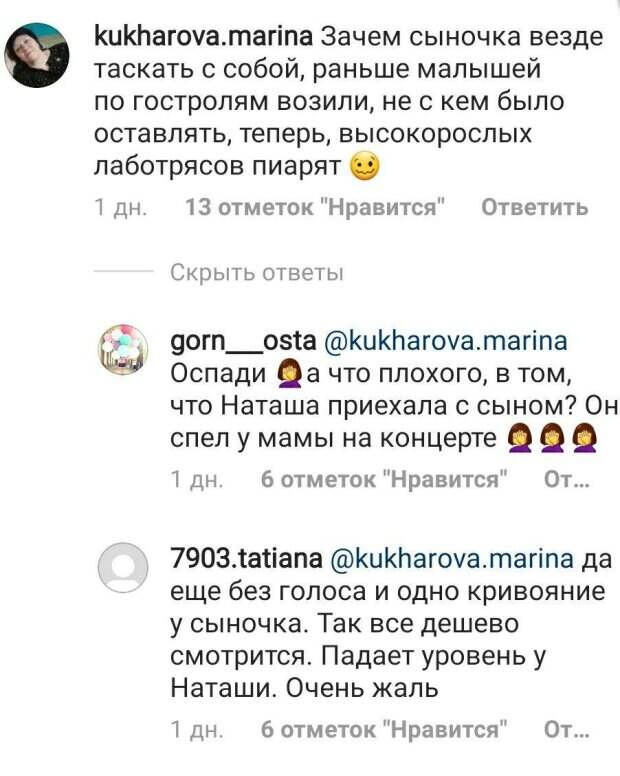 Однако главной причиной скандала стал также факт того, что дома у Королевой и Тарзана обе девушки украли украшения на сумму около 5 миллионов рублей и три тысячи евро. После произошедшего Королева комментировать скандал не стала, а просто уехала на гастроли, причем уехала она не одна, а вместе с сыном Архипом. Молодой человек присутствовал на ее выступлениях, участвовал лично и даже спел пару строк, за что нарвался на критику. Во время одного из концертов был записан ролик, который также вызвал ажиотаж в сети. Архип и Королева сплясали за кулисами и удивили своим поведением поклонников: «Каждый третий комментарий-оскорбление. У неё итак проблем хватает, а вы ещё и в соц.сетях добавляете. Откуда столько зла?; Почему чем старше она становится, тем больше становится похожа на клоунессу?; Чуть башка не оторвалась у Арзхипки!!!чего так кривляться?;Измены мужа вообще не огорчили?; Мама Люда