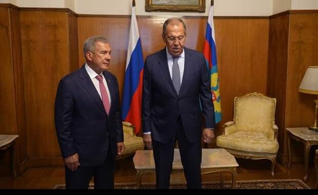 В Министерстве иностранных дел России состоялась встреча главы ведомства Сергея Лаврова с президентом Татарстана Рустамом Миннихановым. Об этом «Реальному времени» рассказала руководитель пресс-службы главы республики Лилия Галимова. Министр поблагодарил президента Татарстана за активную работу по укреплению международных связей, в особенности по линии Группы стратегического видения «Россия-Исламский мир».