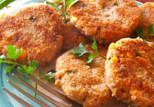 Вкуснейший бургер, которого не встретить в обычном фаст-фуде, приготовим на обычной кухне и по необычному рецепту. Откроем консервы и сделаем закуску с картошкой в тертом хлебе. Ингредиенты: 2 банки натурального тунца 2 больших картофеля 1 яйцо 1 столовая ложка кукурузного крахмала Петрушка Панировочные сухари 1/2 лука Оливковое масло Соль Способ приготовления: 1.