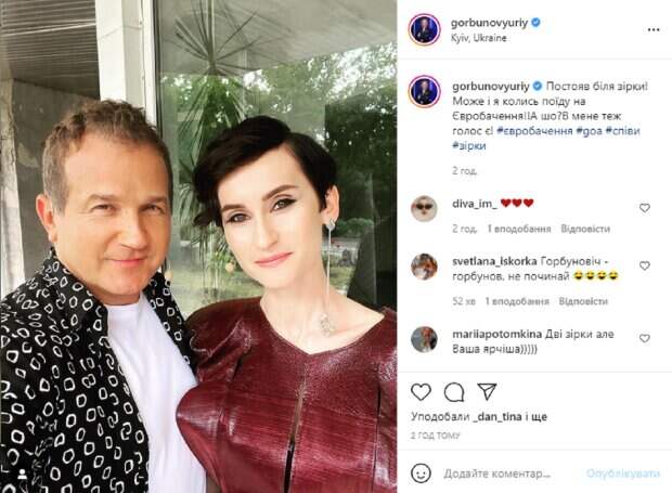 На снимке Юра и Катя запечатлены в интересной локации и нарядных образах. Как видно, Горбунов появился перед камерой в белоснежной футболке, поверх которой накинул стильную темную рубашку с интересным узором, он мило улыбается в объектив. Рядом с ним стоит Катя, на ней замысловатое бордовое платье, волосы аккуратно уложены, а на лице легкий макияж, в глаза бросается необычная длинная серьга в одном ухе. В подписи к публикации Юрий Горбунов написал: "Постоял возле звезды! Может и я когда-то поеду на Евровидение! А что? У меня тоже голос есть!". Пользователи тут же принялись активно обсуждать новое фото телеведущего с певицей, засыпая их комплиментами и шуточными комментариями. "Две звезды, но ваша ярче", "Наша Катюша – это солнышко, цветочек, и лучший котик на земле", "Наша Катенька лучшая", "Такие красивые", "Пусть вас всем везет, вы лучшие", "Супер!", "Успехов. Если сильно захотеть, можно в космос полететь!", "На минутку подумала, что это Тина Канделаки", "Классные", "Классное фото", - пишут в комментариях. Напомним, Похудевший Горбунов удивил преображением, Дорофеева и другие оценили: "Такой стройняшка". Как сообщала Politeka, Горбунов неожиданно подался в политику и нарвался на критику: "Людям жить не за что, а вы. ..". Также Politeka писала, Осадчая засветила свою белоснежную кухню, на которой колдует для Горбунова и детей: "Не смешите...".