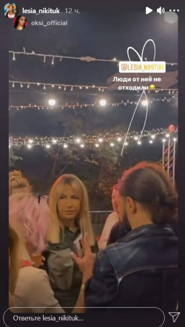 Девушка активно ведет социальные сети и делится с поклонниками моментами из жизни. На этот раз Леся Никитюк поделилась новым видео на своей странице в Инстаграм. Она репостнула видео известного фотографа Оксаны Шевчук, которая запечатлила её на мероприятии. Девушка показала, как выглядит Леся в повседневной жизни. "Люди от неё не отходили...Узнали?", - спросила у пользователей сети фотограф. Реакций и комментариев под видео нет, поскольку формат Сториз в Инстаграм этого не предусматривает. Politeka рассказывала, Никитюк в новом образе отправилась в Одессу и сообщила грустную новость: "Закрылся..." Также, взлохмаченная Никитюк с красным лицом показала результаты интенсивных тренировок: кадры Ранее сообщалось, Никитюк в спортивном мини показала, как испытывает себя на прочность в спортзале: "Как вам вариант жима?"