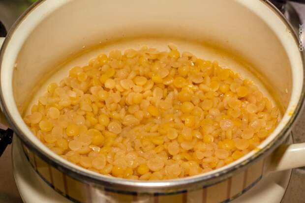 Отварной горох можно использовать и в кашах, и в супах. Проблема в том, что разваривается он обычно достаточно долго. Чтобы решить проблему, нужно просто заранее немного замочить горох, а уже потом он будет вариться всего минут пять. Горох подойдет любой, и цельный и колотый подойдет. Замочить его лучше будет с вечера.