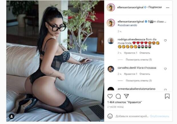 Об этом пишет Politeka.net со ссылкой на страничку знаменитости. "Доброе утро", - написала звезда под фотографией. Фанаты поставили почти полторы тысячи лайков и написали комментарии: "Доброе утро, прекрасная муза", "Что это за женщина? Красивая", "я скучаю по тебе", "Доброе утро красавица", "Так прекрасно", "Великолепная девушка", "Идеальная красивая кошка", "Доброе утро, еще одна прекрасная работа, как всегда", "Доброе утро, красивое и чудесное", "С каждым днем все больше Эллен", Доброе утро, красавица!!!", "Невероятная бразилькая звезда". Мы писали, что известная модель Эллен Сантана показала себя в эффектных образах. Красотка позировала в бюстгальтере и ушках. Образ девушка дополнила юбкой снизу. Напомним, хозяйка самых красивых ягодиц без штанов развлеклась на кровати, фото утех Также Politeka писала, что хозяйка самых красивых ягодиц показала все пикантности в наряде Санты А еще Politeka сообщала, что хозяйка самых красивых ягодиц Эллен Сантана без штанов устроила шалости на улице