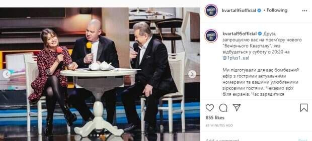 Так в одном из номеров Евгений Кошевой, Юрий Крапов и Юрий Великий покажут встречу Владимира Зеленского с олигархами в кабинете президента. Для политической пародии юмористы надели соответствующие костюмы и даже парики. Для другого номера "кварталовцы" пригласили на сцену певца Михаила Поплавского, которого посадили за стол вместе с Кошевым и Кравец. За чаем актерам удалось рассмешить звездного гостя. "Друзья, приглашаем вас на премьеру нового "Вечернего Квартала", которая состоится в субботу в 20:20 на @ 1plus1_ua! Мы подготовили для вас бомбезний эфир с острыми актуальными номерами и вашими любимыми звездными гостями. Ждем всех у экранов. Время зарядиться позитивом!", - предупредили в посте. Ранее Евгений Кошевой за время карантина слегка отрастил волосы и усы в качестве эксперимента. Однако на днях артист решил, что лысина идет ему гораздо больше и сбрил волосы на голове - для этого он обратился к профессиональному парикмахеру, побоявшись стричься самостоятельно. "После 19-ти лет лисовства)) решил 2 недели не бриться))) сегодня пошел в парикмахерскую, потому что сам бы с головой не справился", - поделился артист. Напомним, что располневшего и заросшего Кошевого из "Квартал 95" заметили в одежде для беременных: "Вообще другой человек" Как сообщала Politeka, носатый Кошевой озадачил экспериментами с внешностью: таким актера еще не видели. Также Politeka писала, что впервые за 19 лет Кошевой зарос шевелюрой и бородой, кадры "бунта".