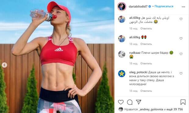 Дарья не боится показать себя настоящую, а потому рассказывает также секреты ухода за собой. Не так давно девушка решила раскрыть секрет идеальной кожи. «Думаю, многие знают, насколько вода важна для человеческого организма. В особенности для спортсменов, которые теряют много жидкости во время интенсивных тренировок. Именно поэтому я слежу за водным балансом в своем организме и пью природную воду. Вода компенсирует потерю жидкости и обеспечивает терморегуляцию. Держит мышечные клетки в тонусе и способствует их восстановлению. Не забывайте делать во время тренировок, чтобы выпить воды», - рассказывает Дарья. Вот что отвечают в сети: «супер!; You are sporty girl