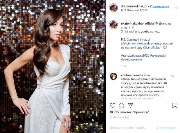 Образ балерины дополняет гламурная укладка и оригинальное украшение на шее. «Судьбу не спутать! У нее твои глаза, улыбка, прикосновение...P.S. Сегодня у нас с Александром Стояновым годовщина свадьбы на паркете шоу "Танцы со звездами"», - подписала фото звезда. Впрочем, в комментариях украинцы обсуждают вовсе не ее шикарный образ, а конфликт с Олей Фреймут, который разгорелся в новом выпуске шоу. Многие явно не готовы простить Кухар за ее резкие высказывания в адрес конкурсантов. «Фреймут по существу сказала», «Кстати сама Фреймут, похлеще Кухар. Характер ужасный», «Я знаю, что Екатерина удалит этот комментарий, потому что все негативные комментарии она удаляет, но настолько отвратительной персоны на телевидении я еще не видела, вам надо идти на курсы актерского мастерства, потому что актриса из вас паршивая, а как судья, то вообще полный ужас», «Ну и язык у вас», «Ваши комментарии в танцах это украшение шоу. Вам нужно идти в кинематограф», «Вы кто? Королева? Возомнили кем себя? Вы же даже не красавица», «Катя, спасибо за вашу прекрасную и сложную роль в этом шоу. Без вас смотреть было бы очень скучно», - пишут люди. Ранее мы писали, что Ольге Фреймут досталось от Екатерины Кухар второй выпуск подряд, и на этот раз экс-ведущая "Ревизора" уже не выдержала. Фреймут порекомендовала балерине Екатерине Кухар сходить в церковь вместо того, чтобы нещадно критиковать непрофессиональных участников на паркете. Напомним, Ольга Фреймут жестко припечатала Кухар в прямом эфире, страсти на "Танцях" накаляются. Как сообщала Politeka, Фреймут без лишней скромности обнажила свое декольте, приспустив платье. Также Politeka писала, что Кухар из "Танців з зірками" поплатилась за оценки Цыбульской и Танчинцу.