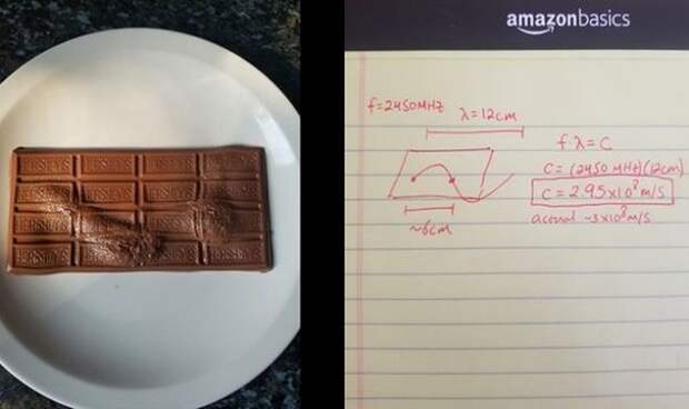 Астрофизик Дэвид Берардо из Массачусетского технологического института предлагает всем желающим провести дома безопасный эксперимент, который позволит измерить скорость света с помощью обычной шоколадки и СВЧ-печи. Кстати, после эксперимента шоколад можно съесть без всяких опасений.