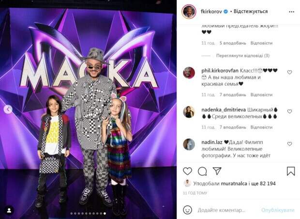 53-летний российский певец Филипп Киркоров показал своих подросших детей Аллу-Викторию и Мартина Кристина Киркоров является звездным детективом российского варианта шоу "Маска" и на свежий выпуск программы взял с собой детей. Об этом пишет Politeka.net со ссылкой на Instagram-страницу певца. "После программы сделаю ещё пост с героем, ведь такого поворота и открытия Маски я не ожидал.