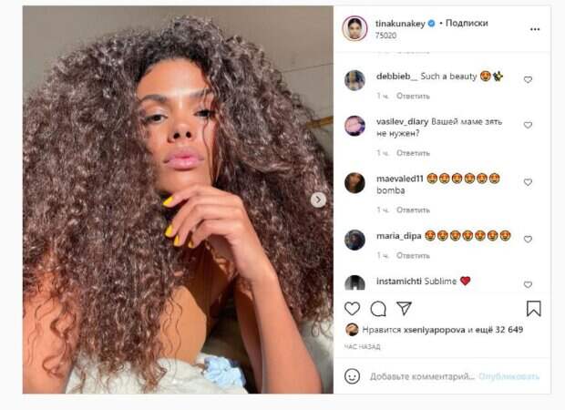 В этот раз Тина показала фото крупным планом. Девушка лежала на кровати, показывая распущенные кудрявые волосы. Интересно, что не так давно, после возвращения из Киева, красотка решила выпрямить волосы и успела опубликовать несколько фотосессий в таком образе. "не могу объяснить, что я имею в виду, и даже если бы я могла, я не уверена, что почувствовала бы это ...", - написала Тина под фотографией. Фанаты поставили более 30 тысяч лайков и написали комментарии: "Ты красавица", "Божественная", "Оглушающая", "Так много, но так красиво", "Слишком много красоты, леди", "Это действительно потрясающе, правда?", "Натуральная красота", "Вашей маме зять не нужен?", "Эта мечтательная грива", "Никаких объяснений не требуется". Напомним, молодая жена Венсана Касселя кардинально изменила имидж после поездки в Киев А еще Politeka сообщала, что молодая жена Венсана Касселя удивила своим неожиданным появлением в Киеве Также Politeka писала, что молодая жена Венсана Касселя на пляже задала тренд зеленым мини-бикини