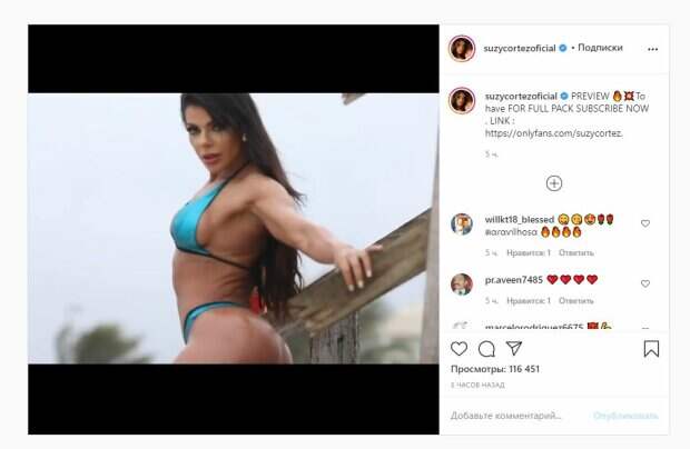 Об этом пишет Politeka.net со ссылкой на страничку знаменитости. Фанаты посмотрели ролик более 100 тысяч раз и написали комментарии: "Потрясающая. Мое сердце украли. Красиво. Куколка", "Вкусный персиковый сок", "Красивая женщина", "Великолепная", "Божественная красавица", "Хорошие пузыри", "Вот это малышка". Сообщалось, что известная модель Сьюзи Кортес порадовала новым откровенным фото. В этот раз звезда решила показать только пятую точку. Красотка была в трусиках-бикини, которые натянула выше бедер, чтобы еще лучше показать свои невероятные ягодицы. Мы писали, что знаменитая модель Сьюзи Кортез впечатлила дерзким фото. В этот раз знаменитая модель примеряла образ соблазнительной ковбойши. Съемка, устроенная в спальне, на фоне роскошной кровати, получилась яркой и провокационной. Напомним, хозяйка самых красивых ягодиц в прозрачном белье завлекала к себе в спальню А еще Politeka писала, что хозяйка самых красивых ягодиц Сьюзи Кортес поиграла с плетью в "невидимом" белье Также Politeka писала, что хозяйка самых красивых ягодиц пошалила в прозрачном белье на диване