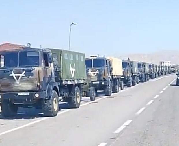 На видеозаписях видно, что на грузовиках белой краской написана латинская буква „А“ в перевернутом виде», — отмечает издание. Ссылаясь на распространенные в турецких СМИ сообщения, издание утверждает, что этот знак изображен «с целью объединения Нахичевани и Азербайджана». Также обсуждается версия, что перевернутая латинская буква «А» означает целостность и единство. В азербайджанских СМИ этот символ трактуется, как «решимость уничтожить незаконную структуру, созданную в Карабахе», говорится в заметке. «С учетом данных утверждений, существующей напряженности в регионе, новой возможной агрессии в отношении Армении, Карабаха и созданных для ее реализации оснований, не скрываемых территориальных амбиций Азербайджана и Турции в отношении Армении, можно сказать, что этот знак содержит определенное послание, показывающее или сигнализирующее о намерении данных стран получить силой так называемый „Зангезурский коридор“», — заключает издание. Напомним, Азербайджан требует от Армении обеспечения коридора в Нахичевань, проходящего через Сюникскую область на юге Армении. Использование термина «Зангезурский коридор» подразумевает экстерриториальный статус этой дороги, что категорически не устраивает армянскую сторону. Представители России неоднократно заявляли, что, говоря о разблокировании транспортных коммуникаций в регионе, Россия никогда не вкладывала в эти понятия экстерриториальный смысл.