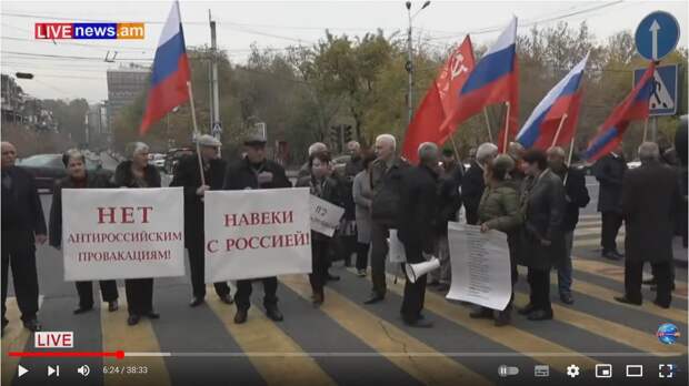 Митинг в поддержку России провели возле российского посольства в Ереване представители Коммунистической партии, Союза патриотов и Союза ветеранов Армении 22 ноября, зафиксировано в опубликованной LiveNews.am видеозаписи. Участники акции принесли с собой плакаты с надписями «Навеки с Россией!», «Нет антироссийским провокациям!