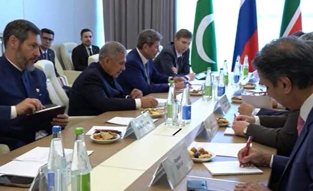 В свою очередь министр торговли Пакистана Сейед Навид Камар высоко оценил экономические достижения Татарстана. Он отметил, что бизнес Пакистана заинтересован в работе на российском рынке, в том числе в Татарстане. Фото: tatarstan.ru (скриншот видео) — Нам следует лучше узнать друг друга, обозначить направления для сотрудничества. Это может быть текстильная и легкая промышленность, сельское хозяйство, нефтепереработка, — выразил Навид Камар свое мнение. Напомним, для участия в Международном экономическом форуме «Россия — Исламский мир: KazanForum» прибыли представители 84 регионов России и 85 стран мира. В этом году мероприятие впервые проходит на федеральном уровне. «Реальное время» — информационный партнер KazanForum. На площадке мероприятия в МВЦ «Казань Экспо» работает выездная редакция — видеостудия издания, в которую мы будем приглашать участников, экспертов и гостей форума. Подписывайтесь на telegram-канал и группу «ВКонтакте» «Реального времени».