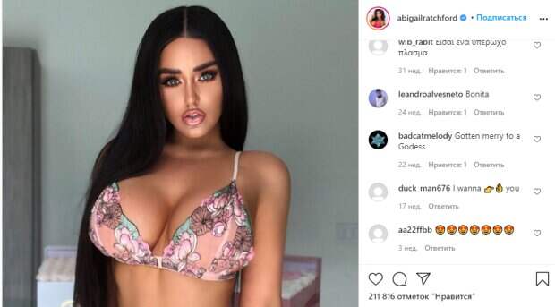 Эби обладает яркой внешностью, потому такие фото тут же набирают множество просмотров. Так, на одном из своих фото, опубликованном в социальной сети, Рэтчфорд позировала в стильном белье нежно-розового оттенка с множеством разноцветных цветов на бюсте. Брюнетка не только смогла удачно подчеркнуть достоинства, но еще и взбудоражила внешностью в целом. Макияж с акцентом на пухлые губы удачно завершил представленный образ. Поклонники в свою очередь написали много комплиментов, восхваляя нежный и домашний вид Эби: «Я никогда не ...