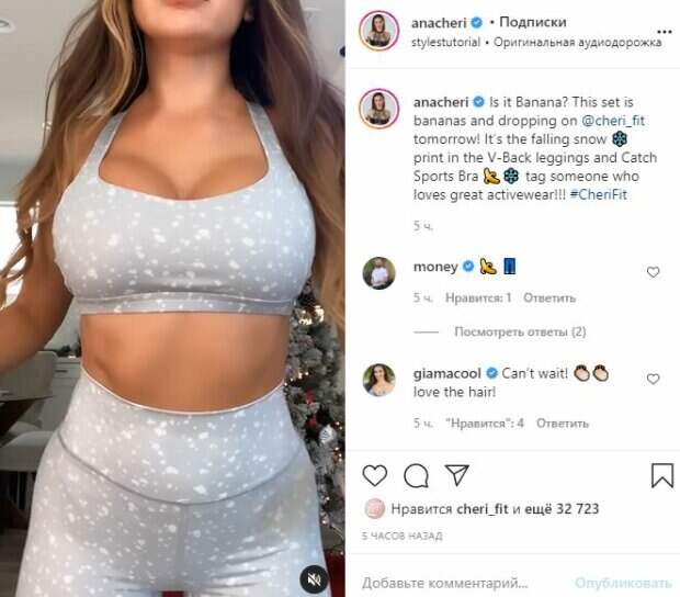 Известная фитнес-модель Ана Чери показала себя, хвастаясь новым образом На кадрах красотка позирует в топе и штанах. Чери Оставила волосы распущенными, а стояла рядом с рождественской елкой. Красотка сначала показала на камеру пятую точку, а после этого и упругую грудь. Видео получилось очень интересным и соблазнительным.