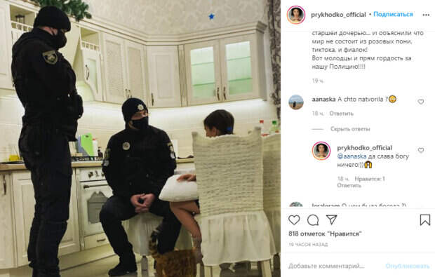 Приходько объяснила, что произошло, - украинцы до сих пор спорят. Так, певица решила последовать примеру американцев, вызывающих полицию по любому поводу, как к примеру, снять кота с дерева или провести беседу с непослушным подростком. "Вот прям очень хочу поздравить с профессиональным праздником Днём милиции этих бравых ребят! Спасибо огромное, что сегодня я обратилась в полицию, и они приехали и провели беседу со старшей дочерью... И объяснили, что мир не состоит из розовых пони, тиктока, и фиалок! Вот молодцы и прям гордость за нашу Полицию!", - говорится в подписи. В комментариях некоторые предположили, что Нанна уже успела что-то натворить. Но оказалось, привлечение полиции было просто для профилактики. "А что натворила?" - "да слава богу ничего;))