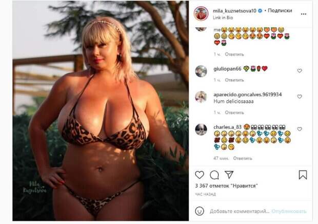 Известная модель Мила Кузнецова, которая обладает 15-м размером бюста, показала себя, удивив размерами Мила в этот раз показалась в леопардовом бикини, которое почти не скрыло пышные формы красотки. девушка стояла на улице, демонстрируя огромный бюст, который прямо выпирал из купальника. Волосы Кузнецова собрала обручем, а образ дополнила пирсингом на животе.
